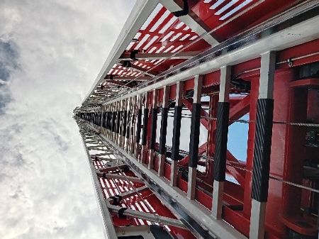 früherer Mitarbeiter im Bauhof. Vom Korb der 30 Meter hohen Drehleiter