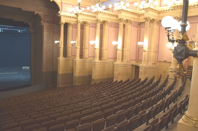 ![]() Blick von der Bühne in den Orchestergraben |