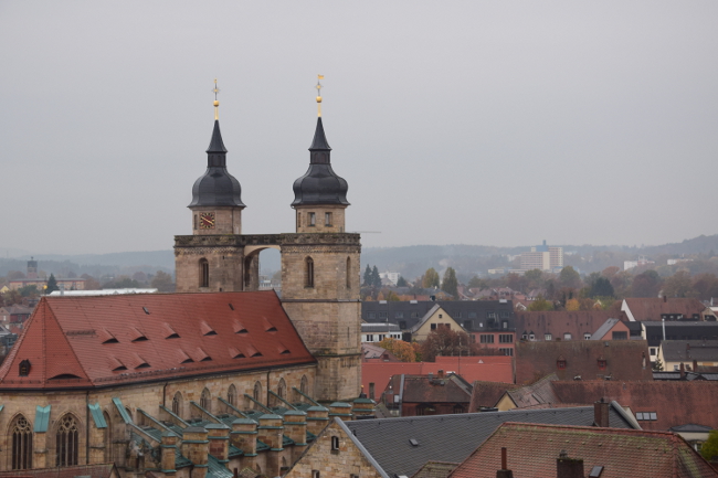 Ein Wahrzeichen Bayreuths ist der achteckigen Stadtturm mit einem schönen Rundblick bis zum Fichtelgebirge. Das Besondere an diesem 1656 erbauten Turm ist eine fast stufenlose Rampe um die Wendeltreppe, die sich im Turmkern nach oben windet.