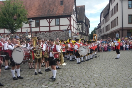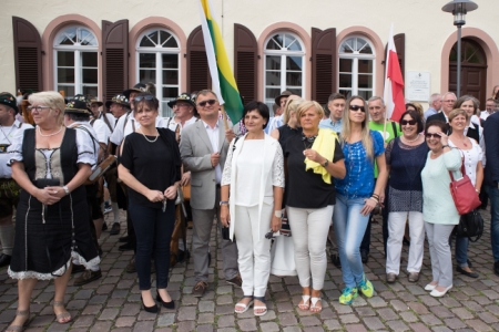 Der Festzug zum Bierzelt beeindruckte besonders die polnischen Gäste, die erstmals in Lohr waren. Für den Miliczer Bürgermeister war das nichts Neues. Er hat sogar, wie im letzten Jahr, die Miliczer Fahne mitgebracht.