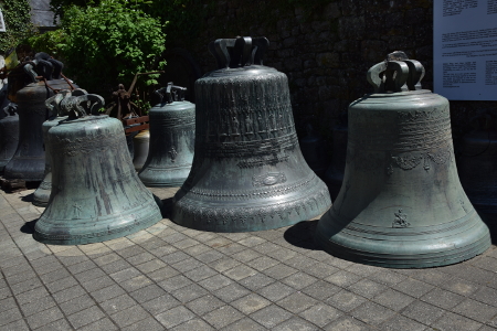 Villedieu les Poêles war das nächste Ziel, nachdem wir uns nach einem kleinen Picknick im Salle Aubert durch die Menschenmassen in der Grande Rue des Mont Saint Michel gequält hatten. Bekannt ist diese Ortschaft durch Kupferschmieden, insbesondere in Bezug auf die Herstellung von Pfannen und Kessel und vor allem durch die traditionelle Glockengießerei Cornille-Havard. Dort wurden 2012/13 acht der neun neuen Glocken für Notre-Dame de Paris hergestellt und im Nordturm aufgehängt.