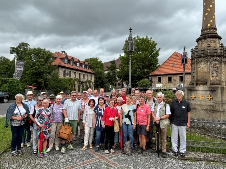 20 Jahren Gästeführerin in Wiesentheid, begleitete die Besucherinnen und