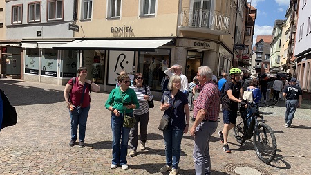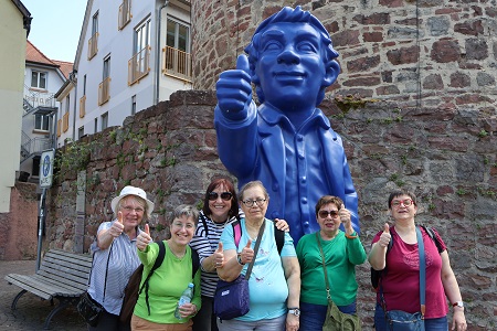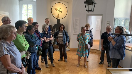 exploration du passé commun. Pendant le long week-end de l'Ascension, du 29 mai au 1er juin, les membres du comité directeur de l'association de jumelage de Ouistreham, ville jumelle de Lohr en Normandie, nous ont rendu visite. L'association de jumelage de Lohr avait préparé à cet effet un programme de visite intéressant sur le thème de la « fabrication du verre et des miroirs ». Le vendredi matin, nous avons visité ensemble la section correspondante du musée du Spessart de Lohr et avons écouté les explications de Céline Weierich. L'après-midi, nous nous sommes rendus ensemble à Wertheim. Après une collation avec un authentique Leberkäsweck franconien, nous avons flâné dans la vieille ville historique avec ses maisons à colombages bien conservées et ses petites boutiques jusqu'au musée du verre. Un souffleur de verre y a montré son art, a fabriqué un calice en verre industriel devant nous, spectateurs intéressés, et a donné des explications claires sur la production de verre industriel à Wertheim. Le samedi, une excursion dans le Birklergrund entre Heinrichsthal et Wiesen a suivi, où les fondations d'une grande verrerie témoignent encore de la production de verre dans le Spessart. Meinrad Amrhein, l'ancien directeur de l'université populaire de Lohr, a donné des informations à ce sujet pendant une heure et les a étayées par des copies d'une encyclopédie française vieille de 200 ans. Wolfgang Weis, jusqu'à récemment président de l'association de jumelage de Lohr, a ajouté des détails sur la forêt du Spessart, où il a travaillé comme chef de triage. Toutes ces informations ont permis de dresser un tableau impressionnant de ce qui s'est passé il y a 300 ans. C'est à cette époque qu'a été inventée en Normandie la fabrication du verre plat, qui permettait de couler des plaques de verre et des vitres et de fabriquer des miroirs. Trois verriers normands, Guillaume Brument, Bernard de St. Pierre et Louis Truffé, apportèrent ces connaissances à Mayence, où ils trouvèrent un sponsor intéressé en la personne de Lothar Franz von Schönborn, prince électeur de la ville. C'est ainsi que furent créées des verreries au Birklergrund, à Rechtenbach, dans lesquelles le verre était fabriqué, coulé en verre plat, taillé, poli et finalement transformé à Lohr en ces fameux miroirs fins que l'on peut admirer au musée du Spessart. Comme ils sont décorés de combinaisons de mots français pleines d'esprit, on les appelle « miroirs parlants » et le miroir du conte « Blanche-Neige » pourrait également provenir de Lohr. Les participants de Ouistreham et de Lohr au week-end étaient tous aussi enthousiastes les uns que les autres quant à la découverte d'une histoire commune de 300 ans. En fin d'après-midi, nous sommes arrivés au foyer de l'IGL. Des cadeaux ont été échangés. Le deuxième maire Dirk Rieb et la troisième maire Ruth Steger sont également venus saluer nos amis français. Dans une ambiance joyeuse, une soirée commune avec un délicieux buffet a clôturé ces journées d'échange. Nous remercions ici tous les membres qui ont participé à la préparation et à la réalisation de la rencontre. En 2026, nous nous retrouverons à Ouistreham du 14 au 17 mai, également pendant le long week-end de l'Ascension. Rapport : M. Lembach Photos : G. Clausnitzer, D. Gautier |